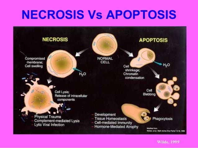 Mechanisms of action and regulation of necroptosis. Apoptosis was long thought to be the only regulated cell death pathway. In addition, its counterpart necrosis was considered to be rather Whereas apoptosis is a form of cell death that is generally triggered by normal, healthy processes in the body, necrosis is cell death that is triggered by external factors or disease, such as trauma or infection.Apoptosis, which can also occur as a defense mechanism during healing processes, is almost always normal and beneficial to an organism, while necrosis is always abnormal and harmful. An argument in favor of a link between the cell cycle and apoptosis arises from the accumulated evidence that manipulation of the cell cycle may either prevent or induce an apoptotic response. Donato N, Perez M. Tumor necrosis factor-induced apoptosis stimulates p53 accumulation and p21WAF1 proteolysis in ME-180 cells. J Biol Chem. 1998;273
